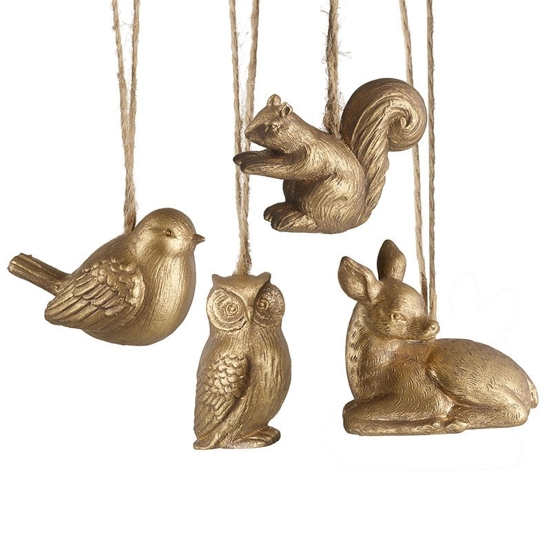 Forest Animals Antique Gold Tree Decor - Set of 4